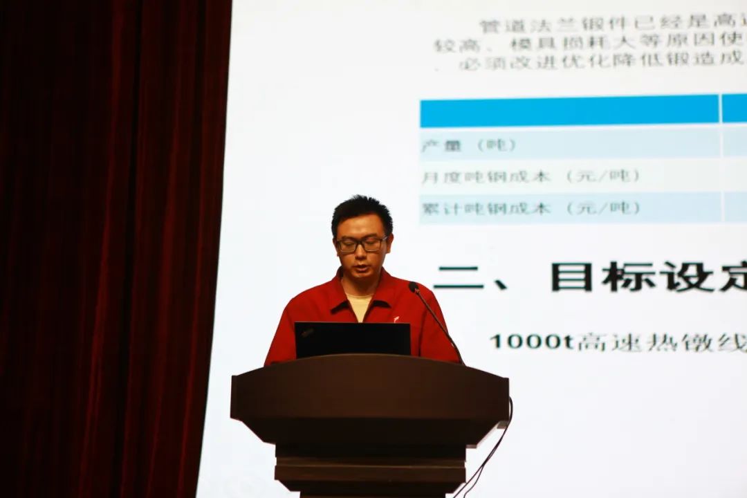 汽鍛公司軸承鋼球分廠吳雨凡作《法蘭鍛造優(yōu)化成本》課題匯報。