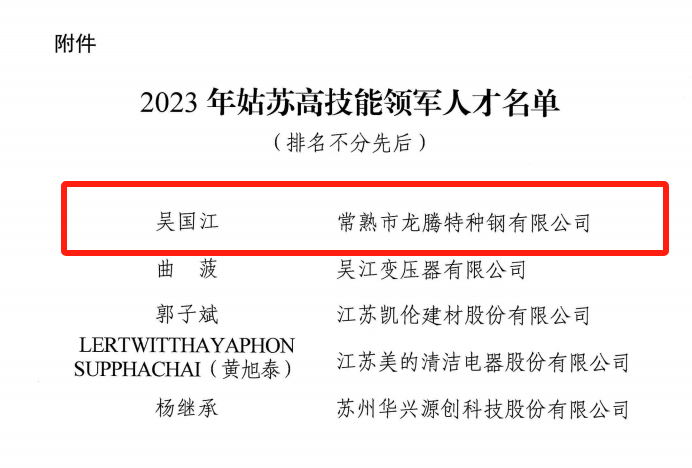 江蘇龍騰特鋼集團(tuán)有限公司燒結(jié)廠吳國江榮列其中,成為常熟市首位獲評此項(xiàng)榮譽(yù)的人才!