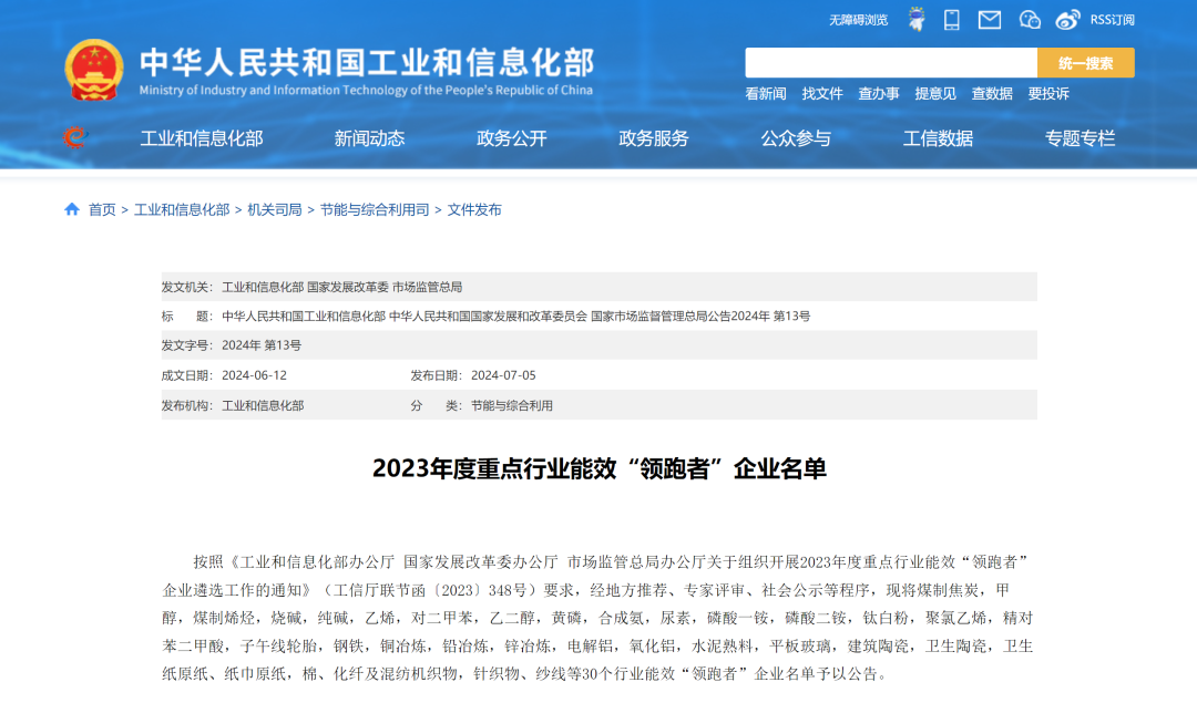 龍騰特鋼榮獲2023年度重點行業(yè)能效“領(lǐng)跑者”