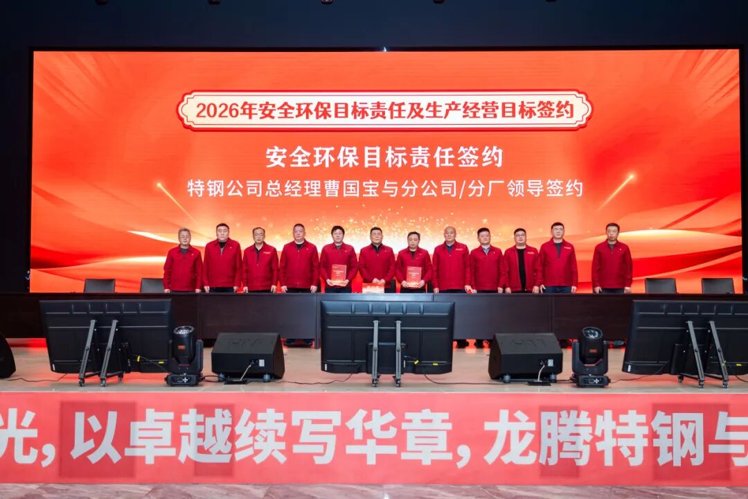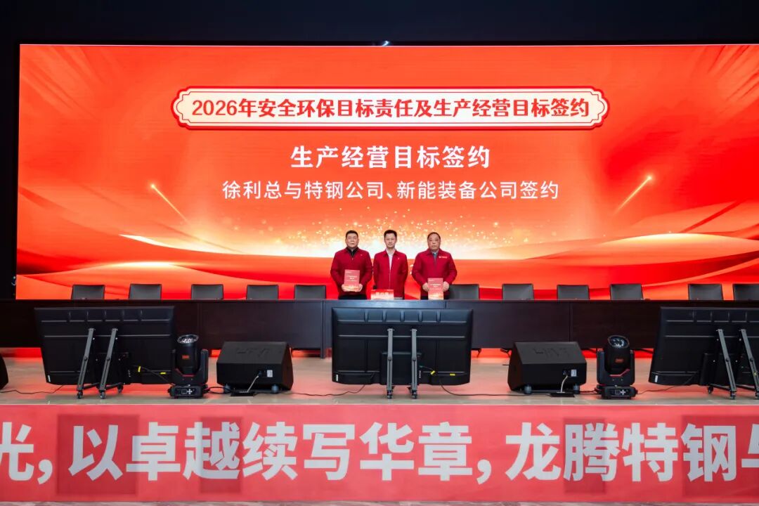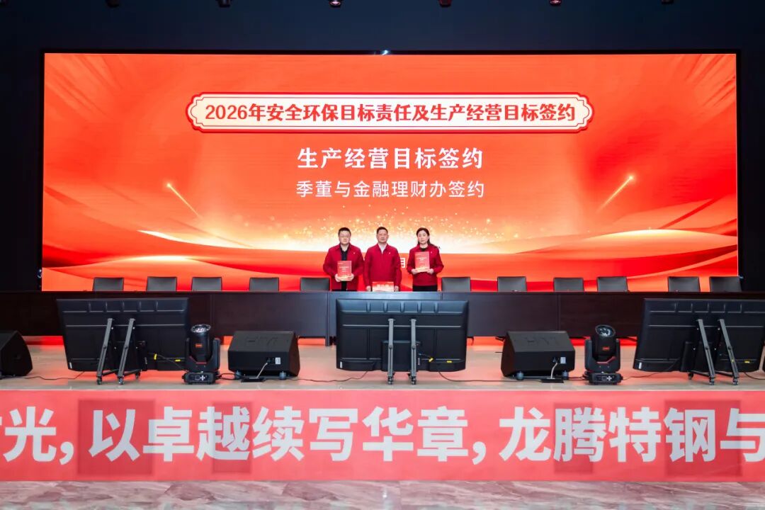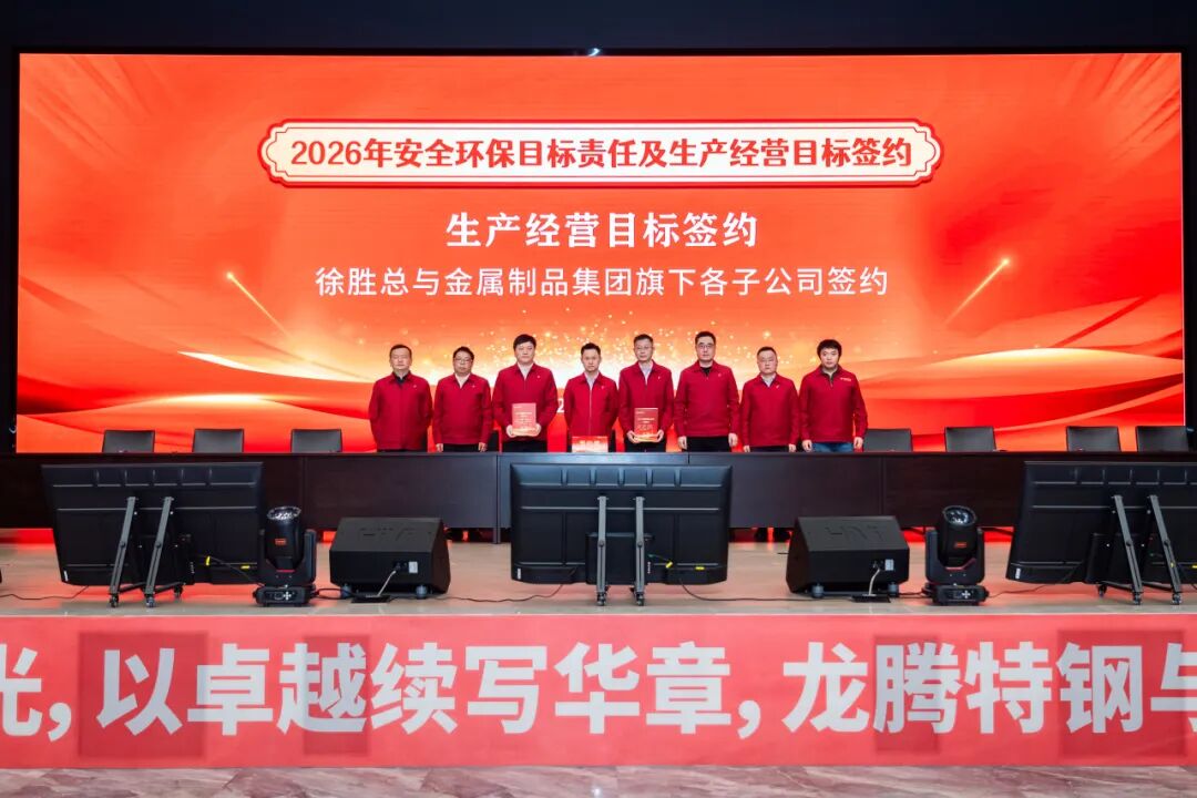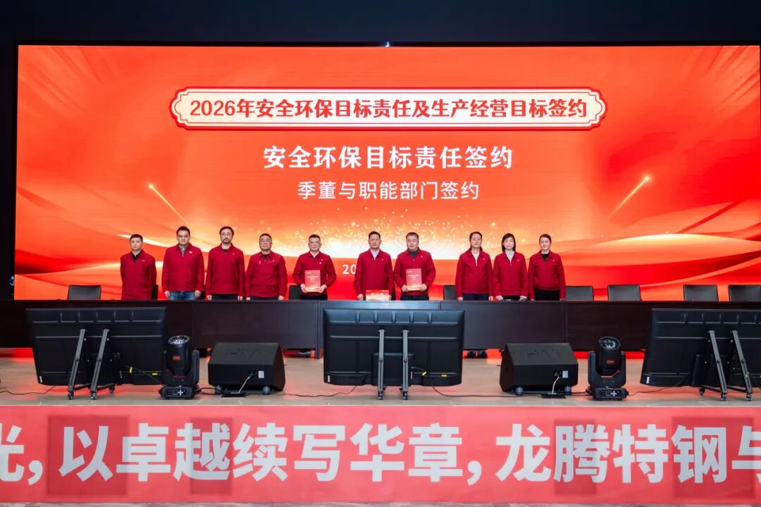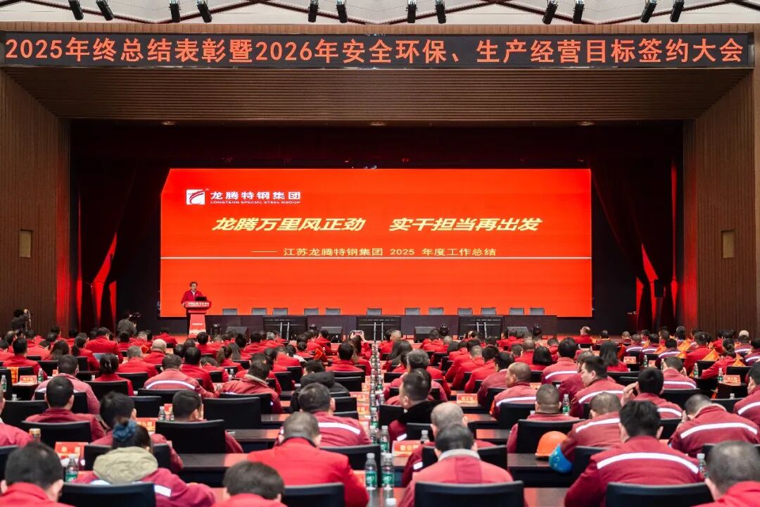 2026年1月28日,江蘇龍騰特鋼集團(tuán)隆重召開2025年工作總結(jié)表彰大會(huì)暨2026年安全環(huán)保、生產(chǎn)經(jīng)營(yíng)目標(biāo)簽約會(huì)議。大會(huì)全面總結(jié)了公司2025年度取得的各項(xiàng)成績(jī),表彰了工作中涌現(xiàn)出的各類先進(jìn),并全面部署了2026年度各項(xiàng)目標(biāo)任務(wù)。
