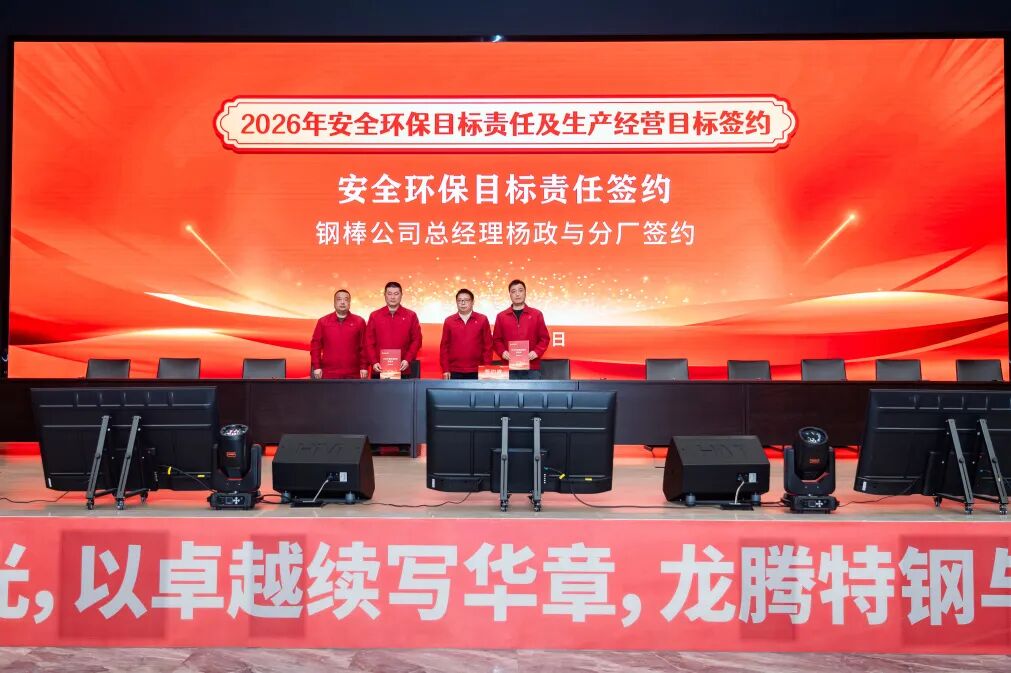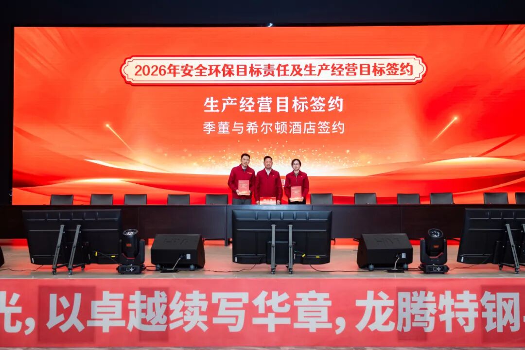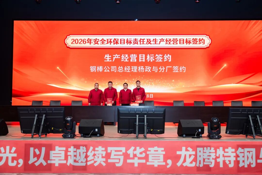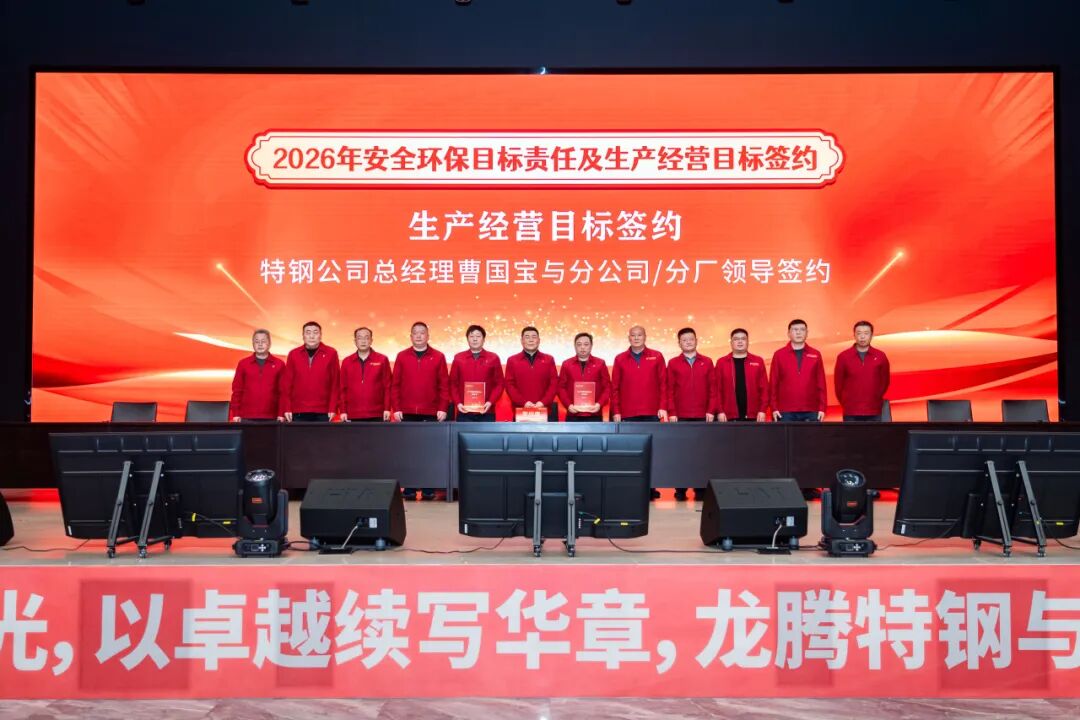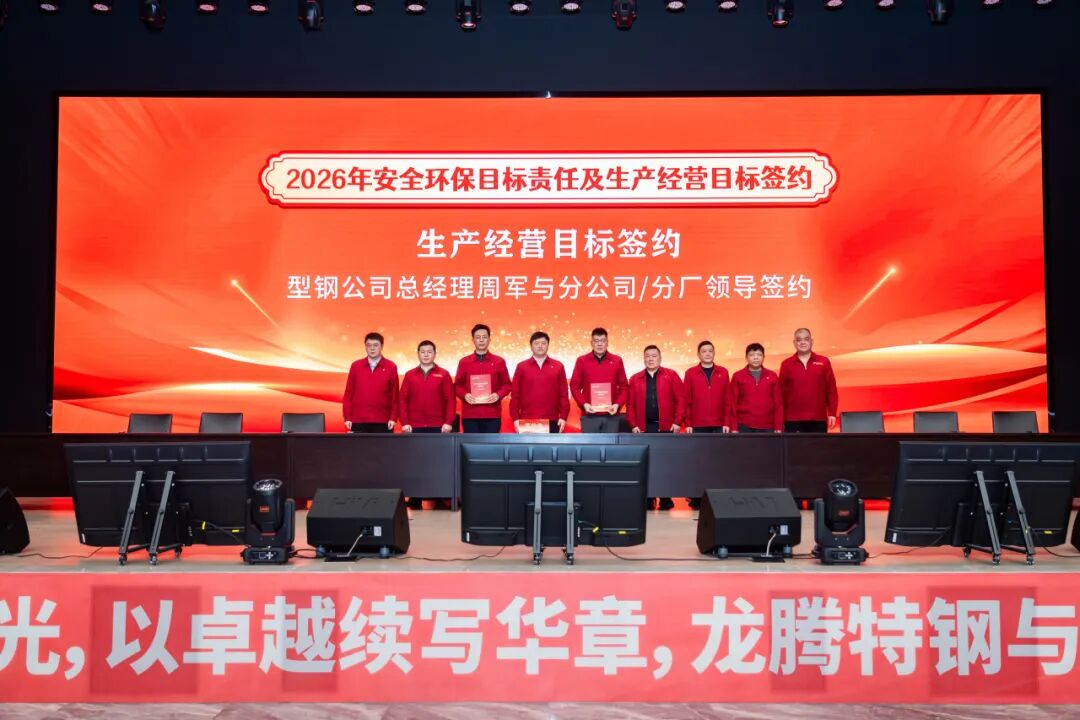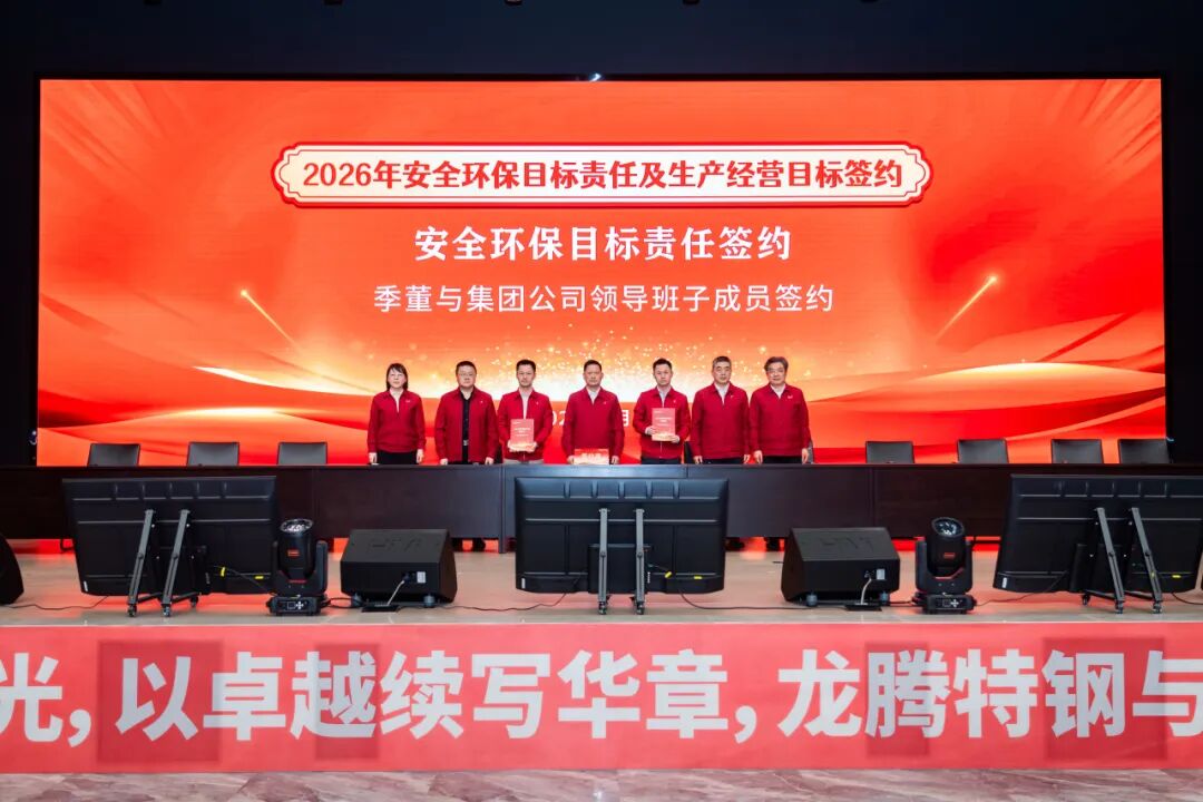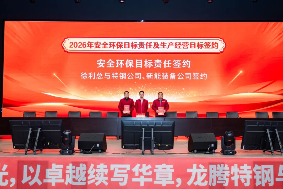 2026年1月28日,江蘇龍騰特鋼集團(tuán)隆重召開2025年工作總結(jié)表彰大會(huì)暨2026年安全環(huán)保、生產(chǎn)經(jīng)營(yíng)目標(biāo)簽約會(huì)議。大會(huì)全面總結(jié)了公司2025年度取得的各項(xiàng)成績(jī),表彰了工作中涌現(xiàn)出的各類先進(jìn),并全面部署了2026年度各項(xiàng)目標(biāo)任務(wù)。